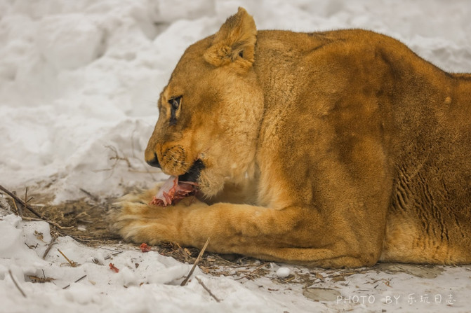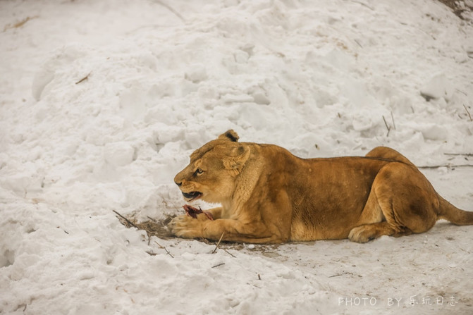 除了东北虎,还有非洲狮散放区。狮子是栖息在非洲的草原上的,在东北这么严寒之地也能生存下来,有点厉害了。
