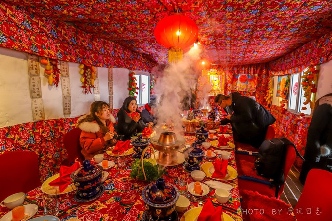 火锅全是用炭火加热的,在这里吃,很有东北的风情。
