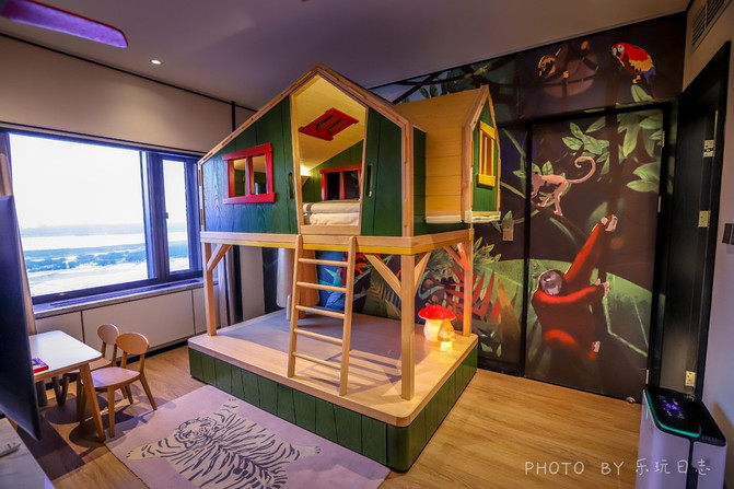 丛林主题套房,孩子的床设计成树屋的样子,通过小木梯爬上床,开启孩子们的探索精神和无限想象。