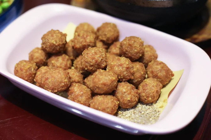 这道菜好像叫贡米丸子?反正是很好吃的一个丸子。