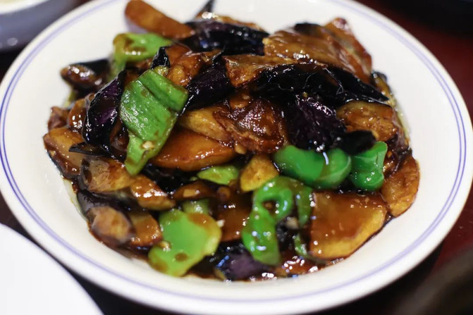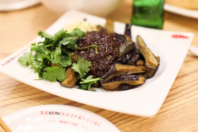 蜜汁肉酱拌茄子,22元。