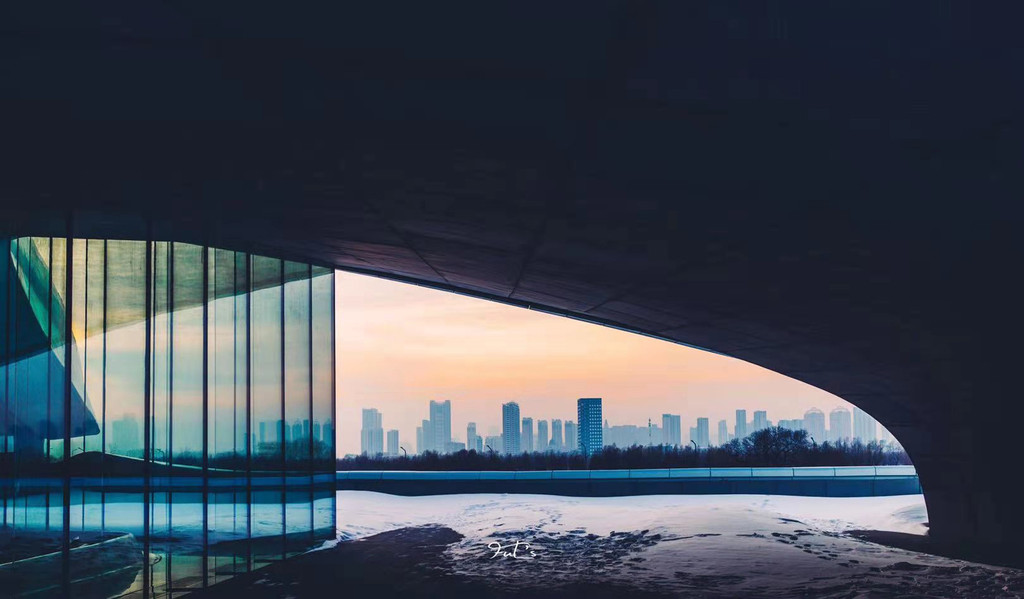 哈尔滨大剧院是一处有着优美设计语言的建筑,透过一丝“缝隙”,这故意而为之的设计可能就是最佳的观景平台。
