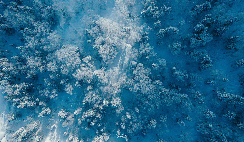 二浪河林场,一颗颗树上结满了冰花,那风吹动的树梢,透过阳光,照耀着散落飘舞的雪花。