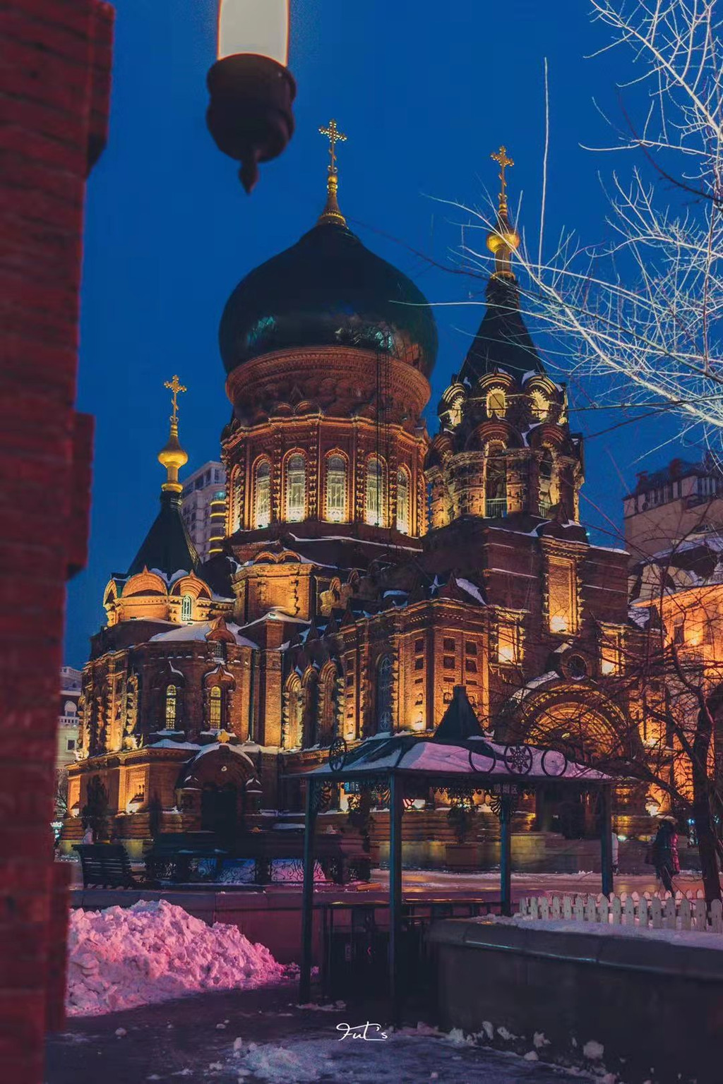 而在哈尔滨的黄昏时刻,更与雪交相呼应。