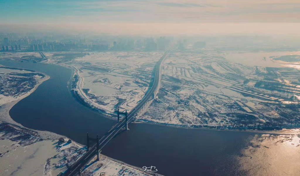 第二天,来到阳明滩大桥,脚下是宽广的松花江,尚未结冰,或许是因为流水也想奔赴远方去看大海的样子。