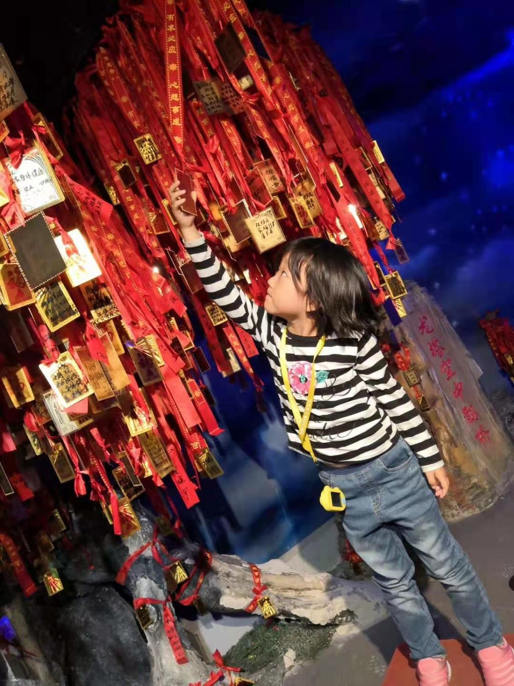 妻子由于旅途劳顿,选择在宾馆休息。我和女儿则打车前往哈尔滨地标建筑之一——龙塔。08年我来的时候,之所以没有去龙塔,主要是当时囊中羞涩。这次沾了女儿的光,有幸登临龙塔之顶。女儿用190米处的室外观光平台望远镜俯瞰松花江两岸,作为游客我们最高可以到达206米的祈福馆,女儿在这里留下了对于全家人的祝福。