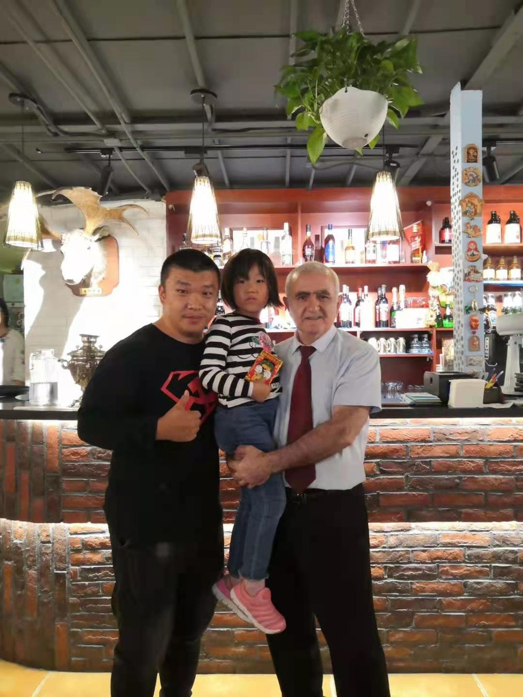 晚上,我和妻子在网上搜索后,决定在金色时光西餐厅集合,一起品尝地道的俄式美食。在就餐期间,我们有幸见到了餐厅的俄国主厨。我们对于主厨的菜品表示了“哈勒少”,主厨则热情的和我们合影留念,并送给了女儿一大板巧克力。
