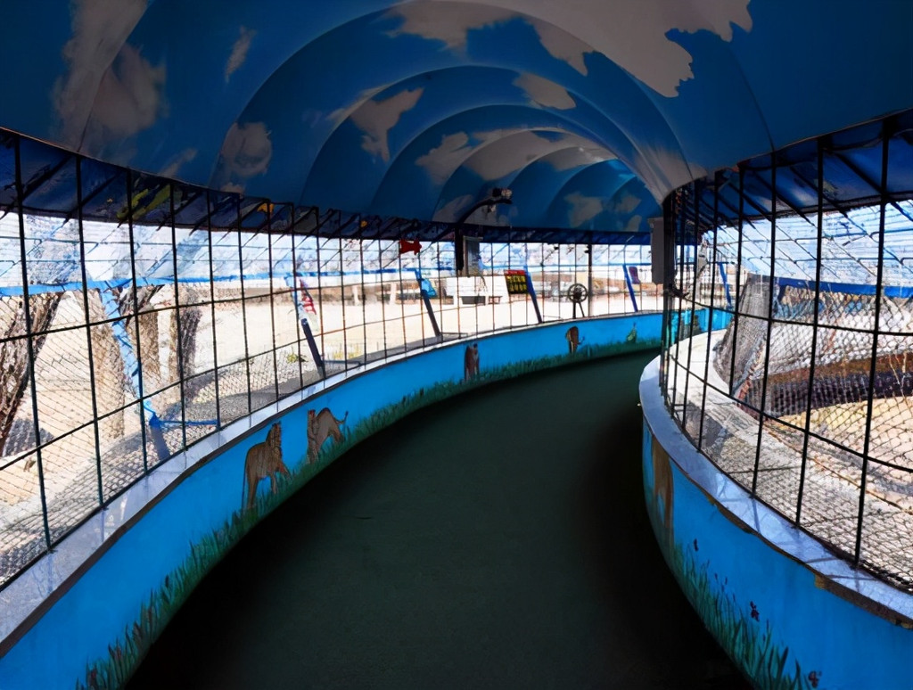 进入景区后登上由四面双层铁丝网围住的观光车开始进入景区。虎林园有着如同监狱般的层层铁丝网与铁门,每到一个景区,铁门会自动打开,观光车进入后立刻自动关闭。