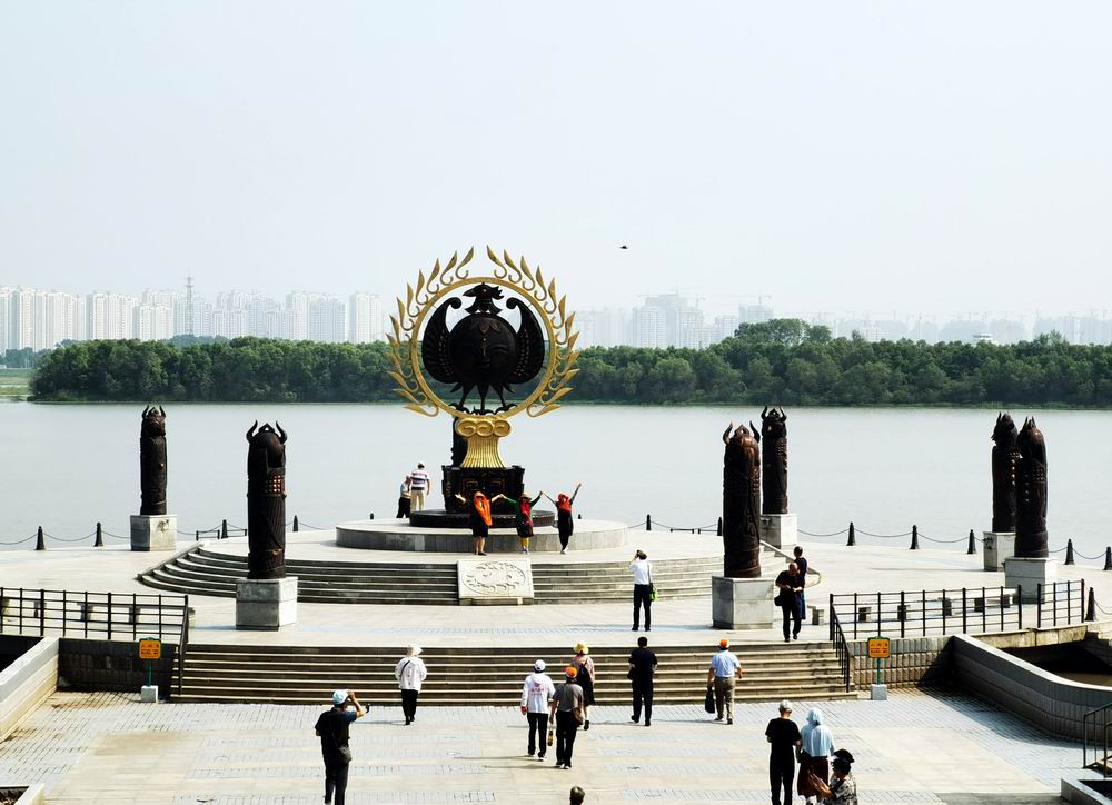 浴日台上当中的一个为现在天上的太阳,周围的九根立柱意为后羿射下来的九个太阳。游人可在观景台上凭湖临风,极目远眺,感受太阳岛风景区“广漠、大气、壮观”的自然风光。