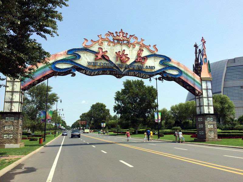 太阳岛景观大道有一个响当当的名字——太阳大道。它是由哈尔滨南岸市区过公路大桥后通往太阳岛核心景区的通道,位于上坞里北侧,全长1.6公里。图为太阳大道上的太阳岛牌坊。