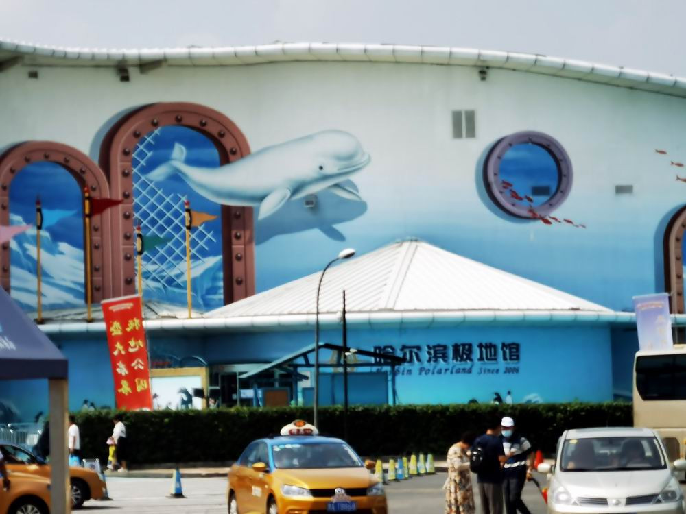 黑龙江科技馆、黑龙江科学会堂、黑龙江电视城、哈尔滨极地馆等造型各异的建筑座落在太阳大道路两侧。图为远眺哈尔滨极地馆。