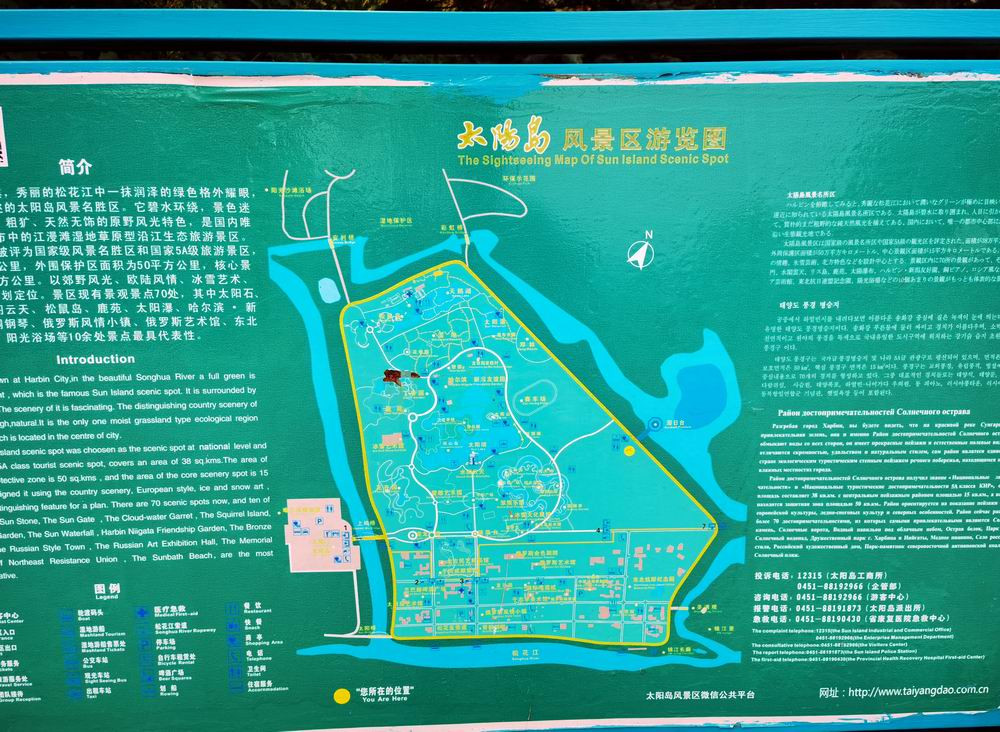 太阳岛风景名胜区核心景区面积17平方公里,现有景观景点70处,其中太阳石、太阳门、水阁云天、鹿苑、松鼠岛、太阳瀑、哈尔滨·新舄友谊园、铜钢琴、俄罗斯风情小镇、俄罗斯艺术馆、东北抗联纪念园、阳光浴场等10余处景点最具代表性。照片摄于太阳岛。