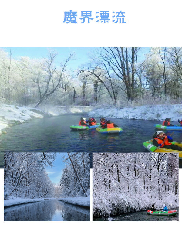 今日行程:06:00起床需要早起在日出之前赶到魔界,【魔界漂流】,冬天在白雪皑皑的河上漂流是一种怎么样的体验呢?那种“人在画中游”的感觉。
