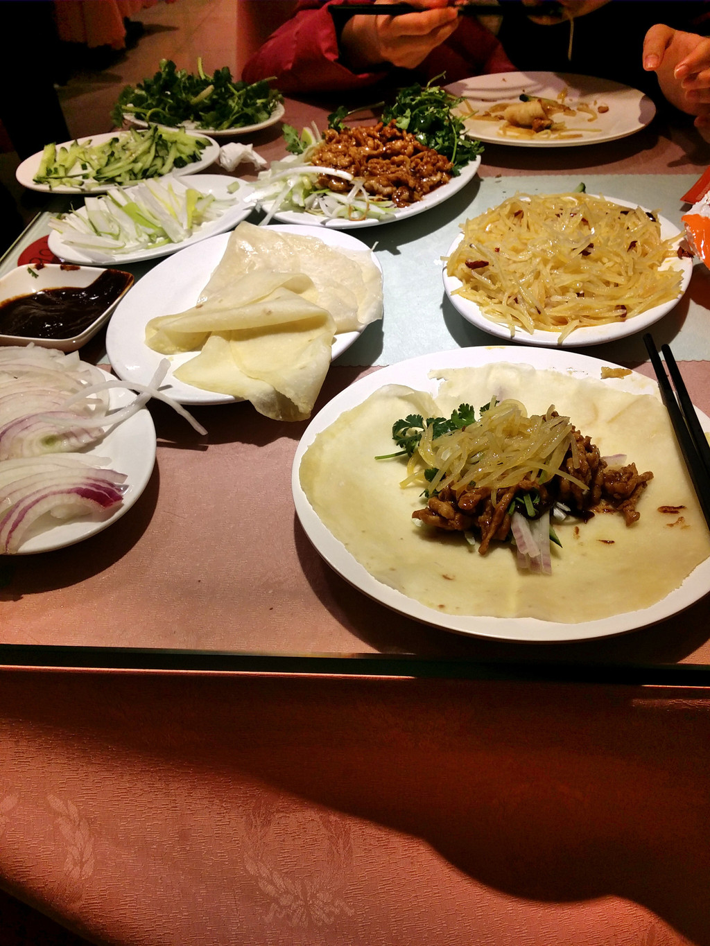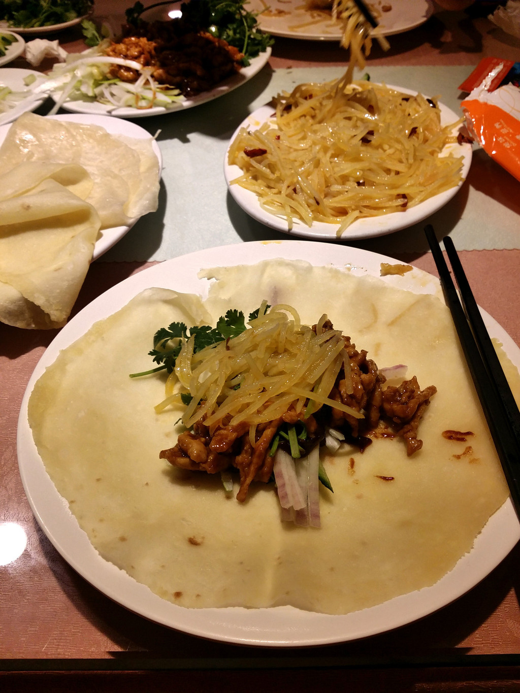 来到这家老仓春饼店,把他家的春饼、筋饼、配菜都给试了一下,味道真不错,以至于这两天我一共去了三四次这家店,只为了能记住这个味道。个人觉得筋饼更好吃,有劲道,配菜点个套餐就行,我们当时就点重复了。不过北方的面的确是劲道。