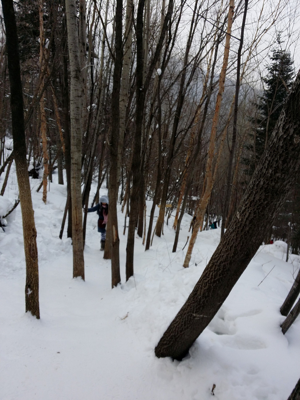 山里的路不好走,我穿的鞋也不给力,走几步就得摔一下,而且山没有台阶,都是前面人走出来的一条雪路,很多地方雪还很深。
