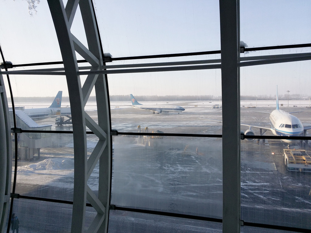 当天晚上飞机晚点了大约3个小时,等到哈尔滨的时候已经是夜里了,来接我们的叔叔阿姨也是在外面冻的够呛。一下飞机,在连廊上我吹了一口气,瞬间很多白冷气就出来了,心想这才是东北的正确打开方式嘛。