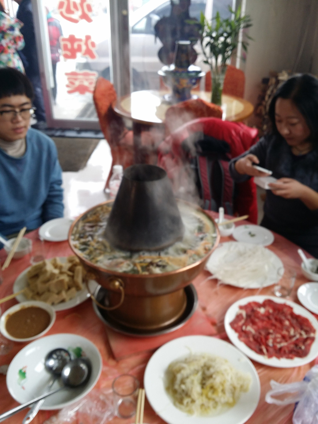 到达吉林,我们被安排跟别人拼桌吃了一顿正宗的东北火锅,客观评价,味道还不错,羊肉味也挺正