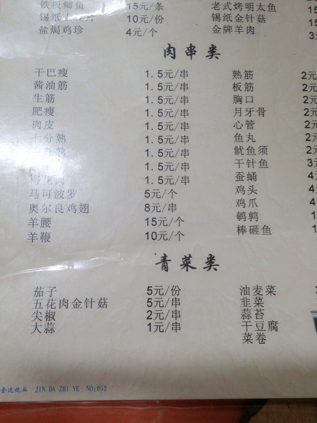 听说吉林的烧烤很好吃,就一起晚上找了家烧烤店。不过这个菜单把我们给弄懵了,干巴瘦是啥?七分熟又是啥?马可波罗又是个什么东西呢?没想到吃烧烤输在了看菜单上,最后只能点了些羊肉串啥的,因为也只有羊肉这种能看懂了,哈哈哈,不过烧烤味道还是不错的。