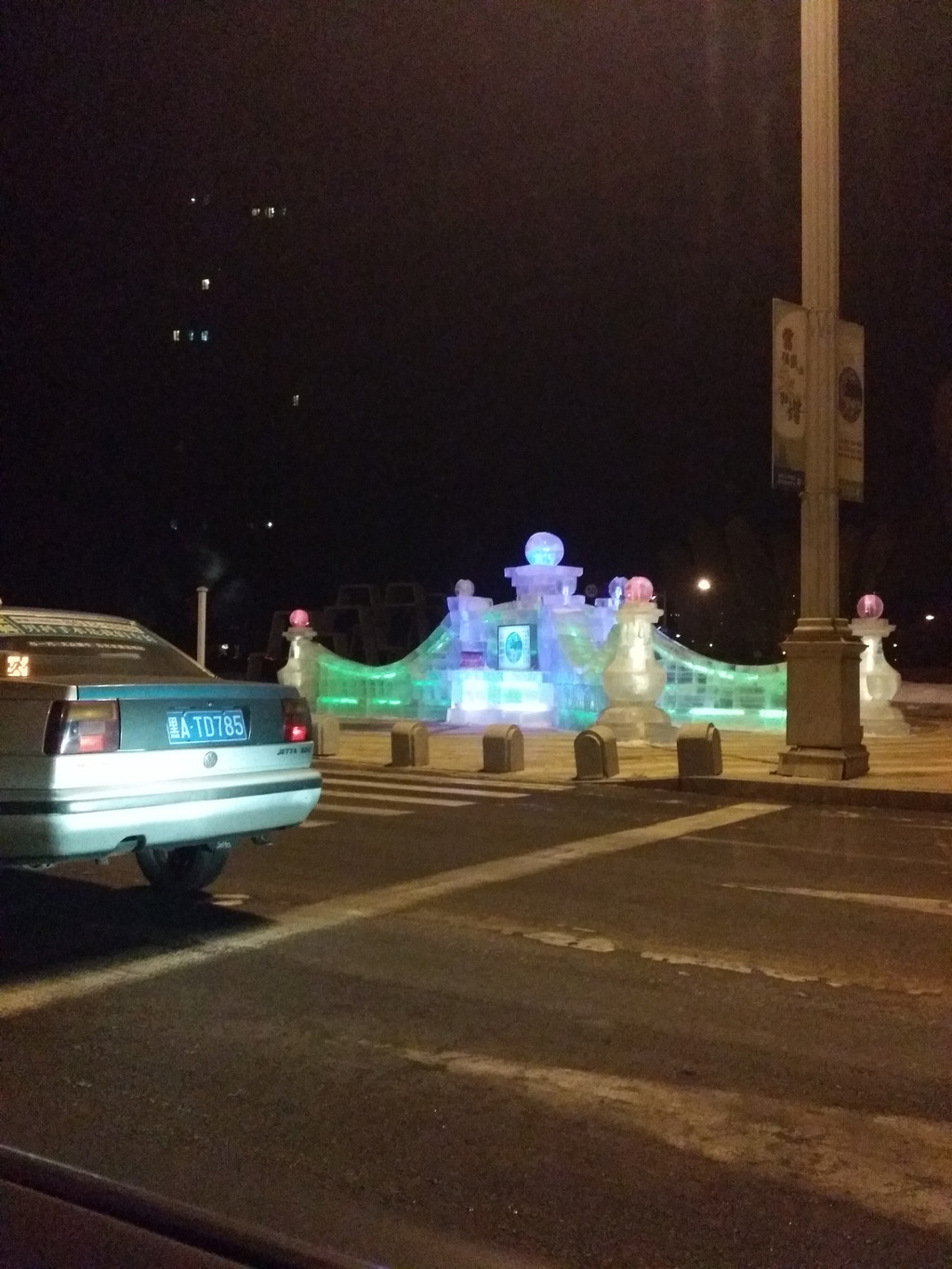 坐在车上,看到路边的冰雕,瞬间感受到了哈尔滨的气氛。到了酒店,已是深夜,酒店里暖气很足,喝一杯热水,感觉人都舒畅了很多。