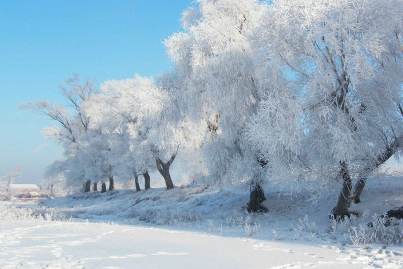 一早,我们就沿着小路,去往看雾凇岛的地方,这边形成雾凇主要原理是因为这里有个发电厂,形成的热水气凝结成的雾凇,小路上都是一排排的树,形成的雾凇景象很美丽。