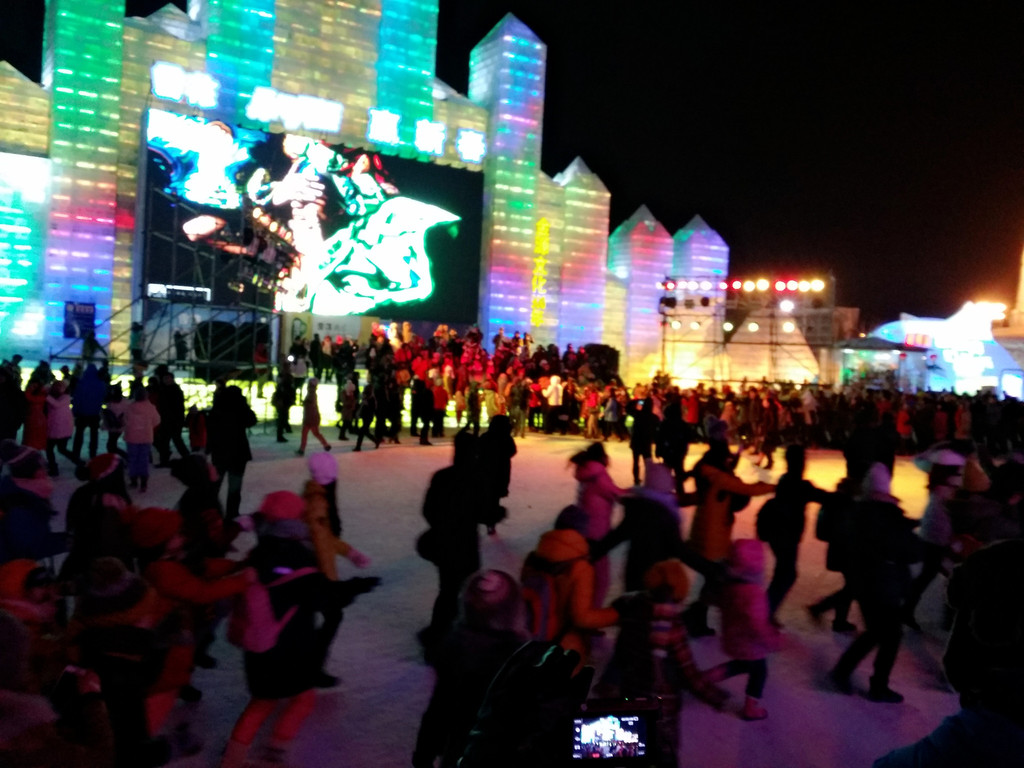 冰雪大世界,是个哈尔滨每年的大工程,里面的冰都是从松花江上取的,非常厚实,当然也耗费了不少人力物力。