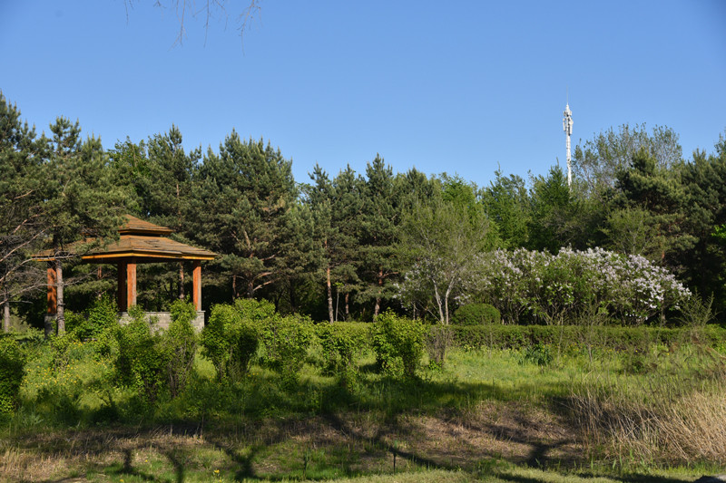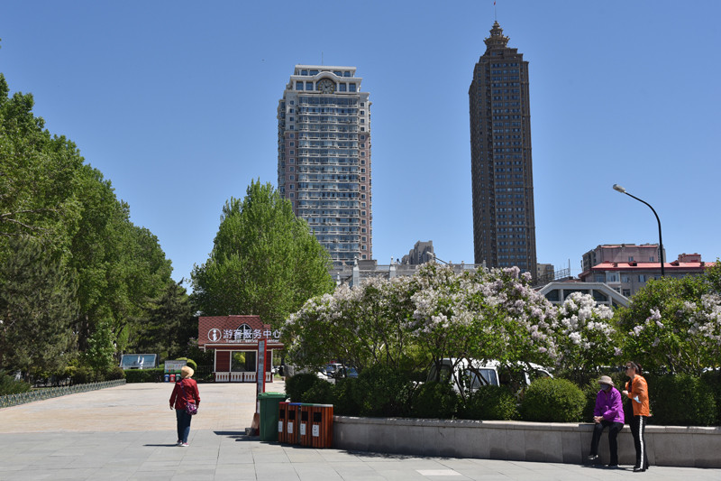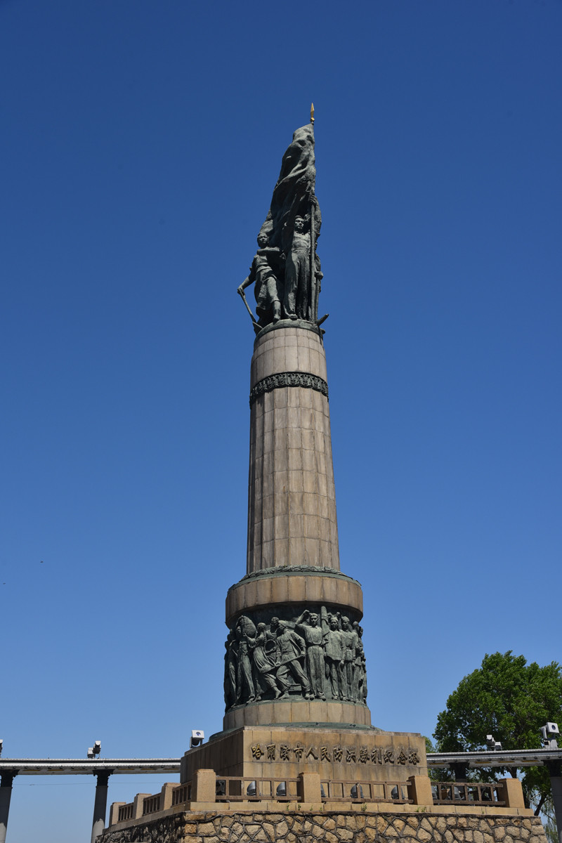 哈尔滨防洪胜利纪念塔高耸入云,十分壮观,由基座塔身、喷泉、围廊和广场等四部分组成,是该市的标志性建筑。在公园里,随处可见哈尔滨的市树和市花,这正是:林木荫荫,榆树满目别样绿;花儿朵朵,丁香扑鼻分外芳。