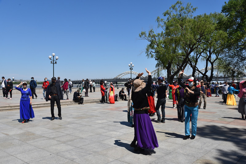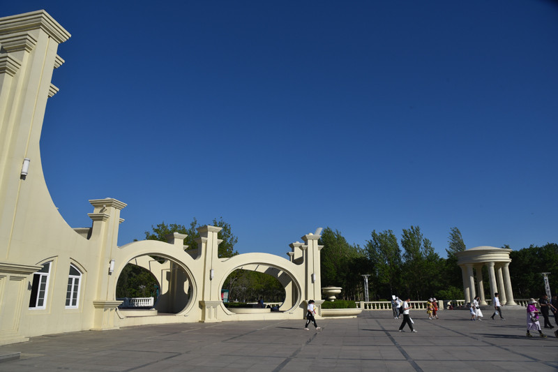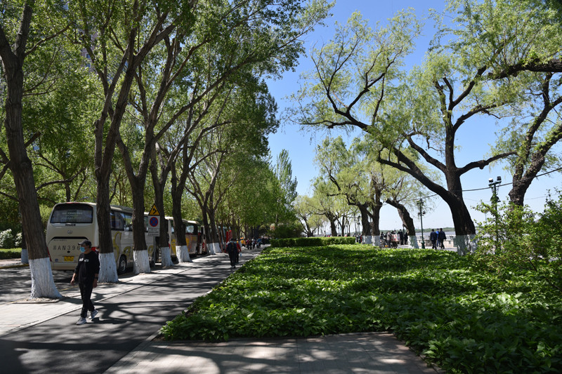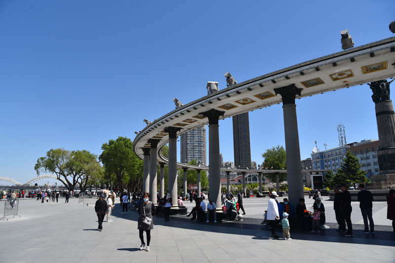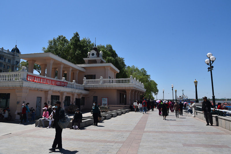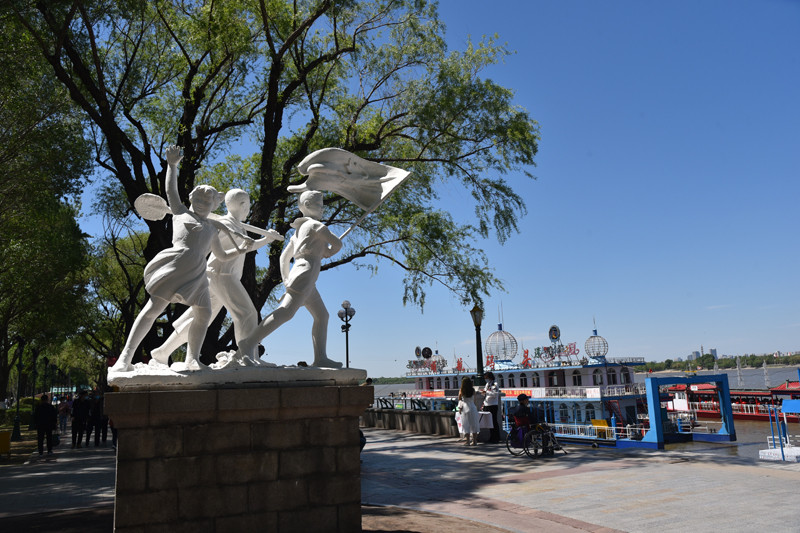 公园里的绿化具有欧洲园林风情,建筑充满俄罗斯古典式风格,走在沿江的林荫大道上,仿佛来到异国他乡。这里是市民休闲娱乐的好去处,有道是:树影幢幢避烈日,树下人群轻歌曼舞;江风习习送清凉,江边钓者垂纶羡鱼。