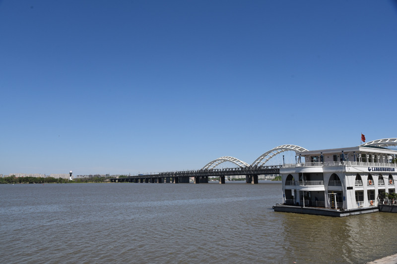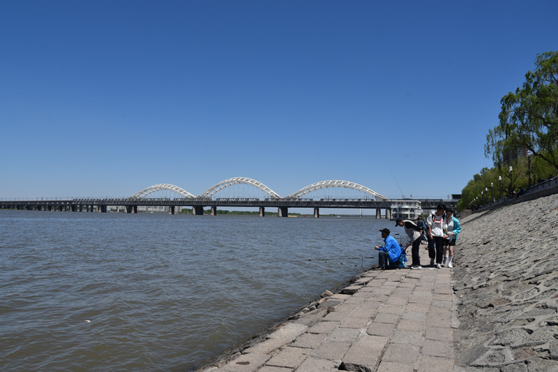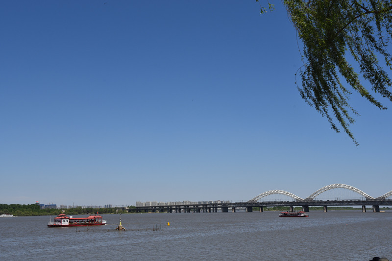 走走停停,极目远眺,那极负盛名的太阳岛公园隔江相望,一条索道横跨松花江,将哈尔滨市区与太阳岛公园相连。那两座遥相呼应的跨松花江大桥,一座犹如巨龙过江,一座宛若长虹卧波,双桥成了哈尔滨铁路发展史的见证。