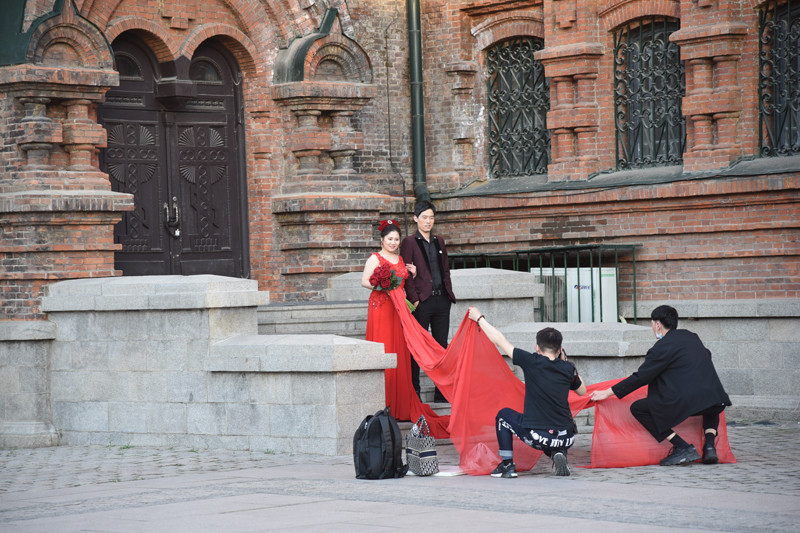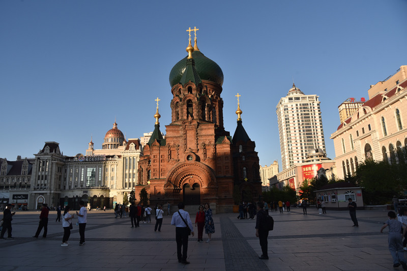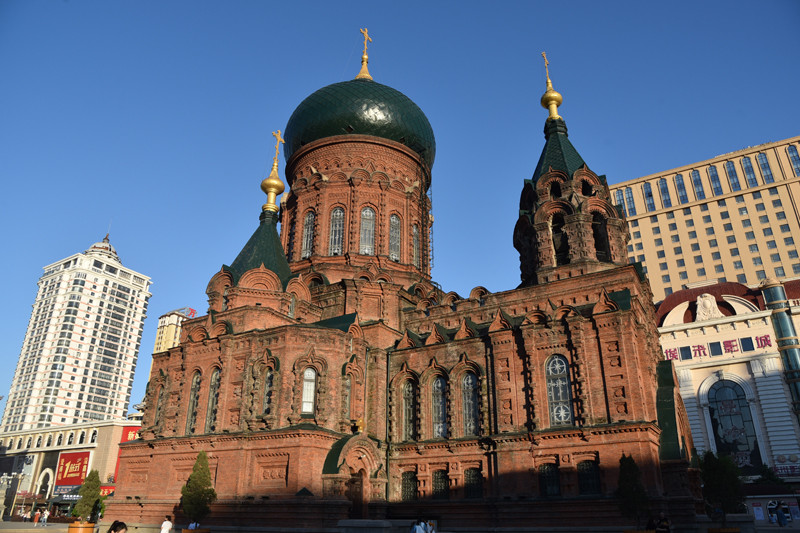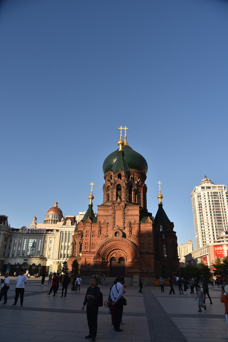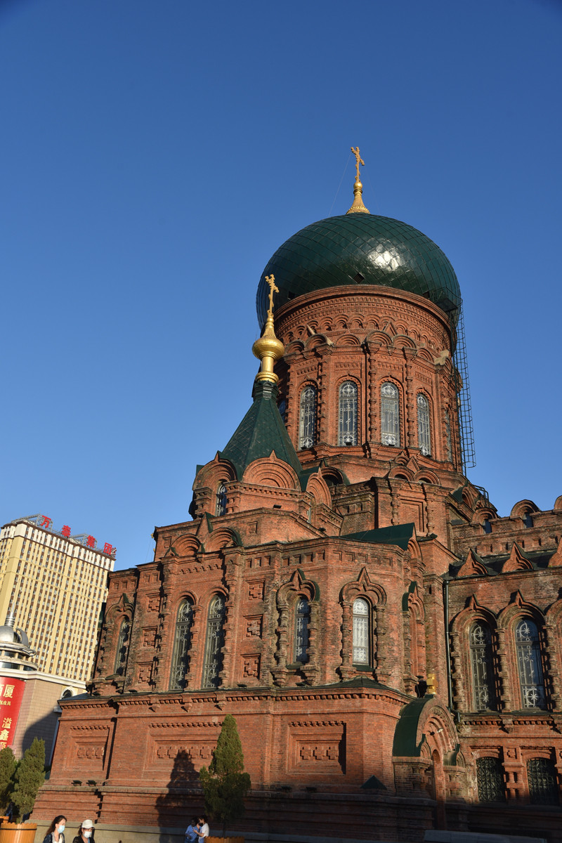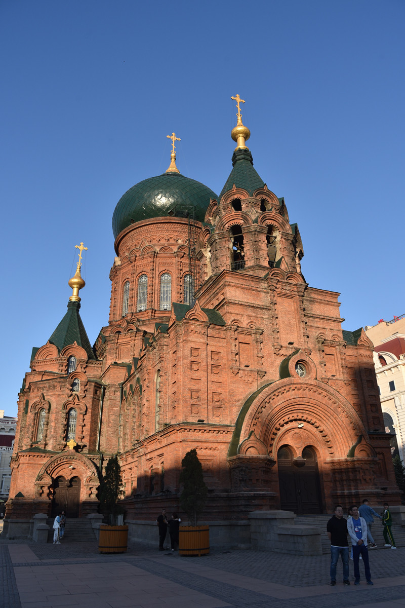 在太阳岛上跑马观花,不是失悔而是失望。圣·索菲亚教堂是一座拜占庭风格的东正教教堂,为哈尔滨的标志性建筑,更是沙俄入侵东北的历史见证。教堂的平面为东西向拉丁十字,外墙形体的构造复杂,清水红砖的砌工精细。