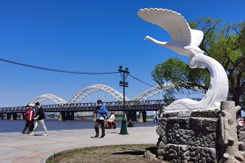 向往哈尔滨已经四十年了,今天终于来到松花江边,来到了斯大林公园。休闲的长椅,石质的护栏,圆形的路灯,琴韵、三少年、天鹅展翅等艺术雕塑分布在绿地之间。这是一座开放式的临江公园,沿松花江南岸顺堤傍水而建。