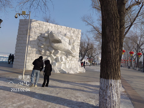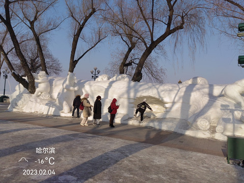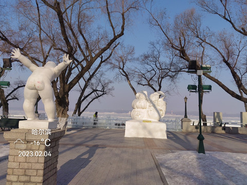 斯大林公园,松花江冰雪嘉年华斯大林公园也搞了许多雪雕作品。