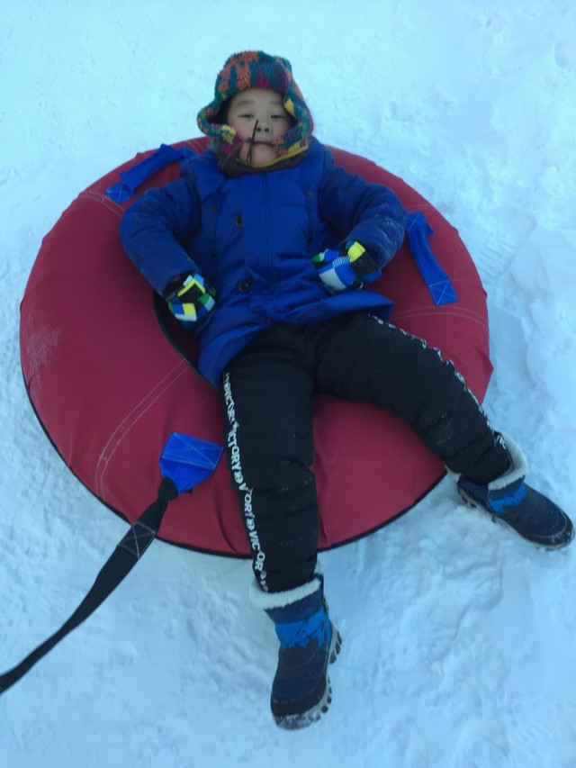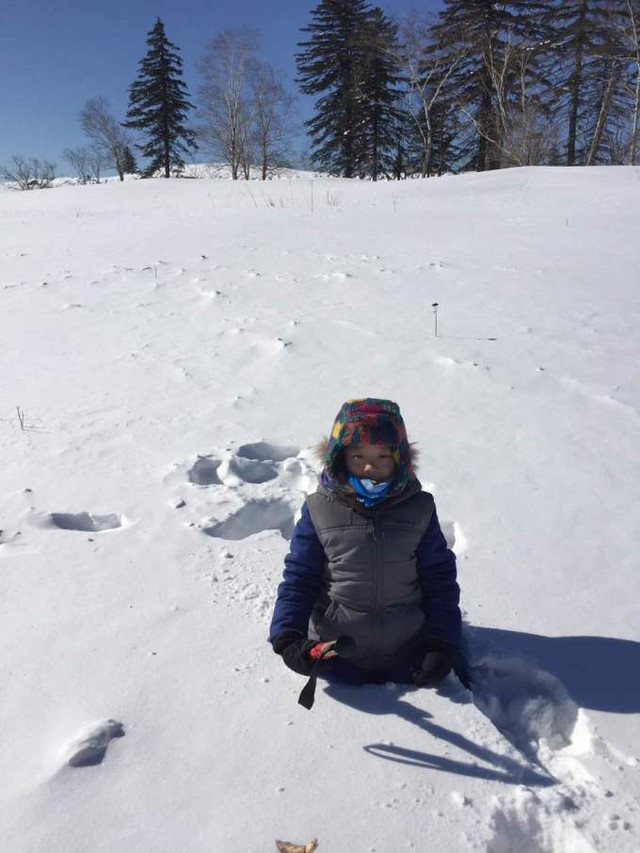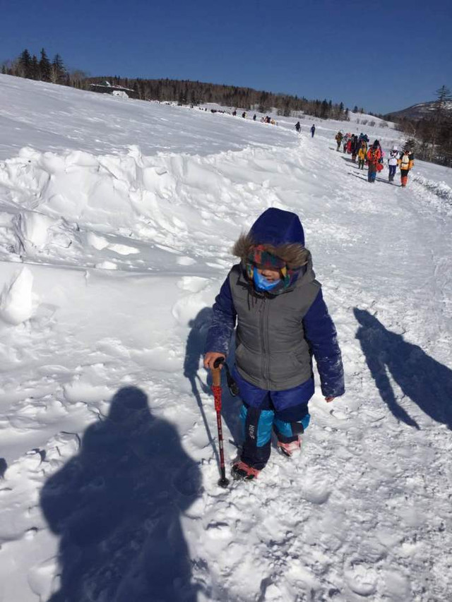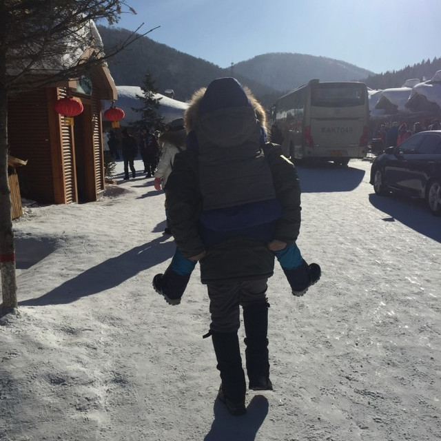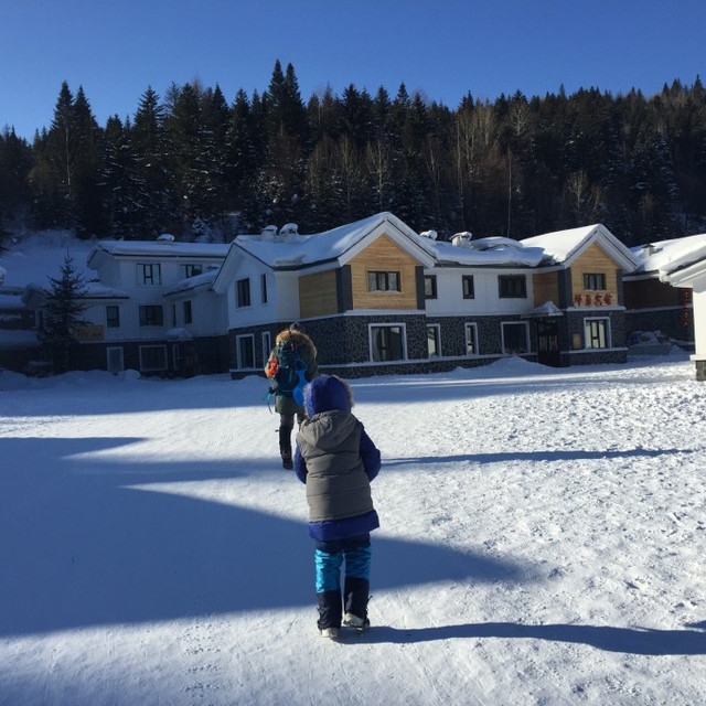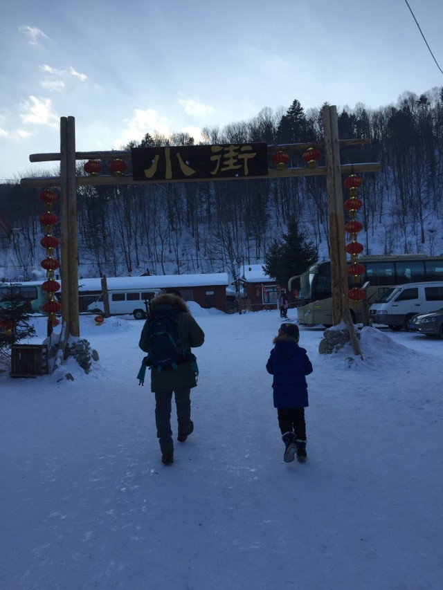 在整个徒步过程中,儿子除了上山时坐了2公里的雪地摩托,几乎全程和我走了下来,走到 雪乡 的时候,已经走不动了。