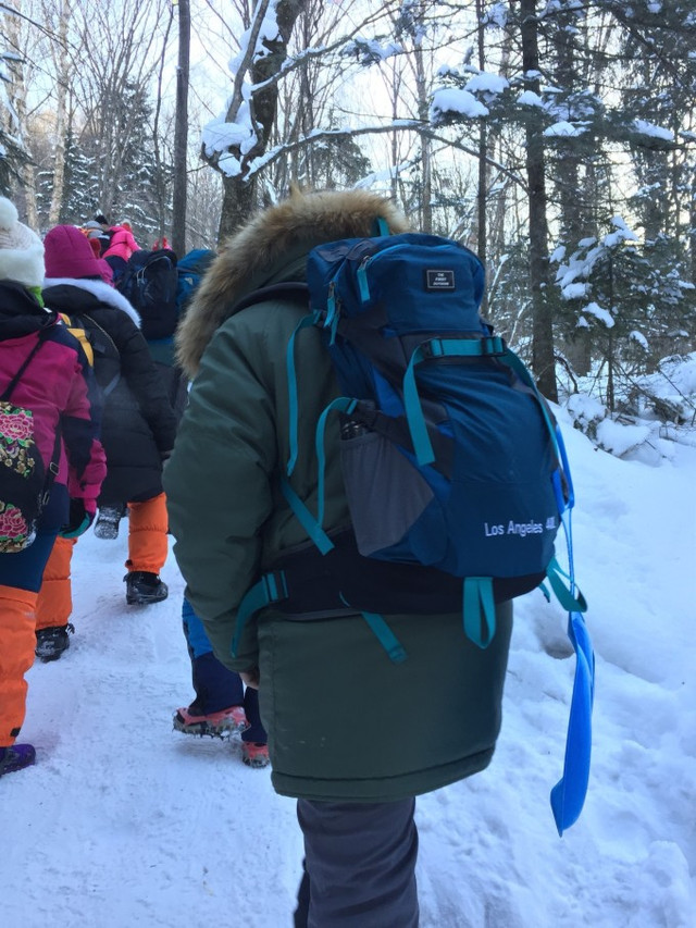 徒步过程登山杖、防滑冰爪、防雪护腿是必不可少的,不然上山时会很吃力。