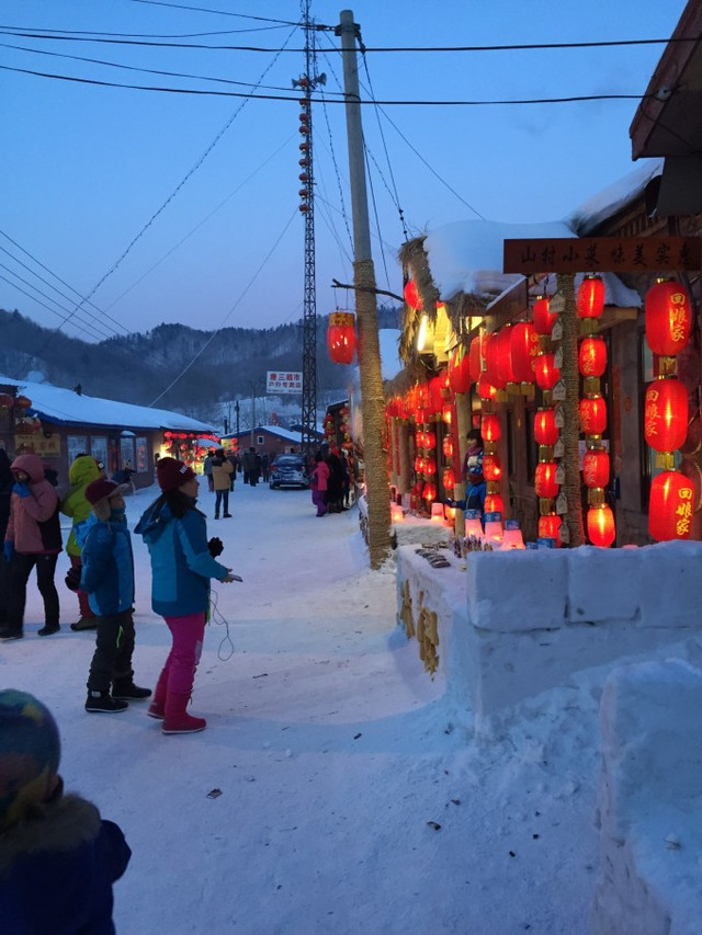 雪乡 要比雪谷热闹很多,可以到剧院看节目表演,可以参观 雪乡展览馆,也可以看一下网红的雪乡照片取景地,当然还有各种小吃。