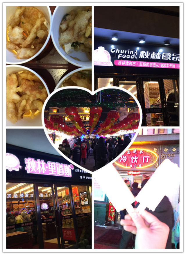 来到中央大街随便逛逛,边走边吃,锅包肉、秋林红肠、大列巴、马迭尔冰糕统统尝一遍,晚餐解决了。