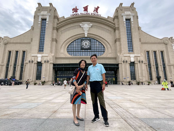 2023.07.10北京时间18:30,记者一行在中央大街东方饺子王用过此行的最后一顿晚餐后,孙雷师傅将我们送到哈尔滨火车站,并在此拍下了东北度假行的最后一张留影。至此,为期八天的东北度假避暑游终于圆满地落下了帷幕。在分手之际,大家诚挚地向一路上为大家保驾护航,热情服务的孙雷师傅,也欢迎他有机会到北京来做客。(图文:冯赣勇)