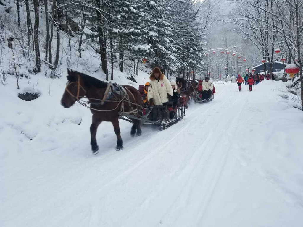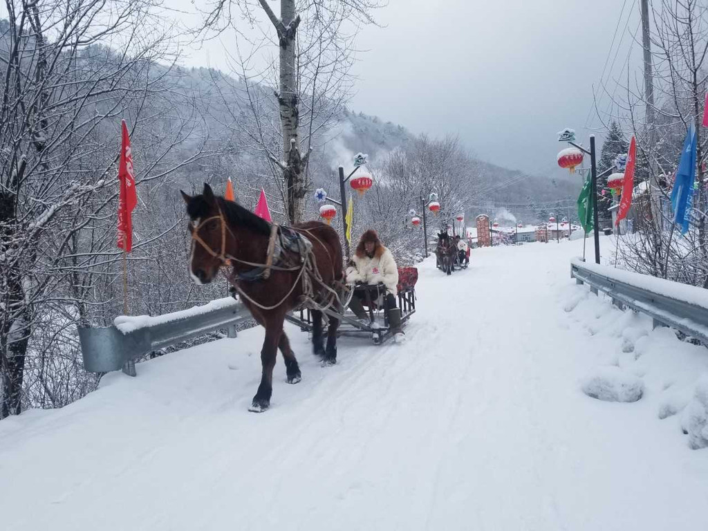第三天早上7点-8点是穿越 雪乡 的时间。跟着大部队爬山15公里,我自己知道体力不好,提前订了马车,叮叮当当的一路很顺利。