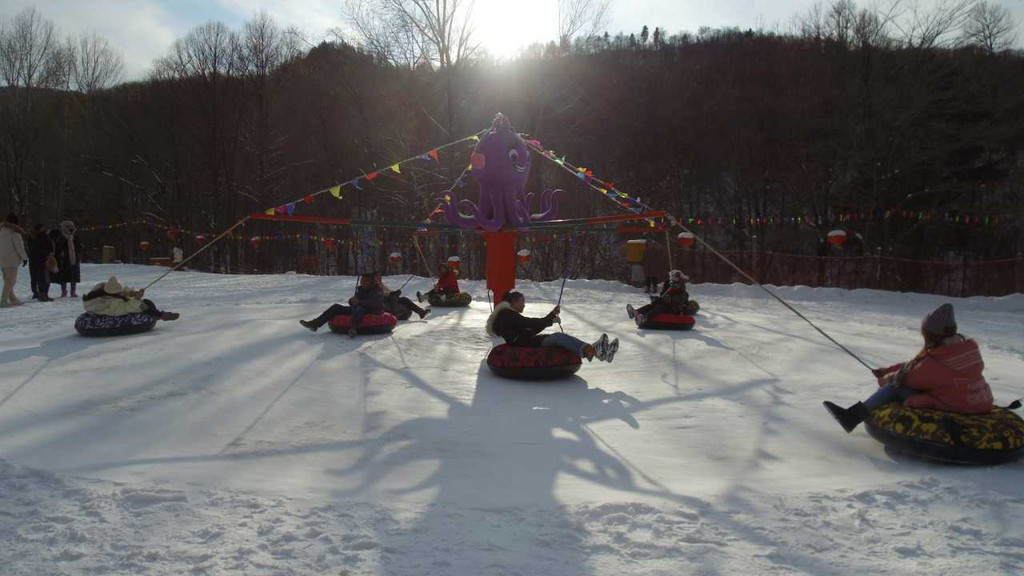 大概中午就可以到达雪谷,是东升林场的雪谷,这里的建议是马上吃饭,因为一下午的时间要去游乐场泡着,不限时间,不能浪费时间,早点吃,早点去,滑雪、雪圈、章鱼转盘随便玩,建议初学者试试滑雪,价格不贵,不限时间。