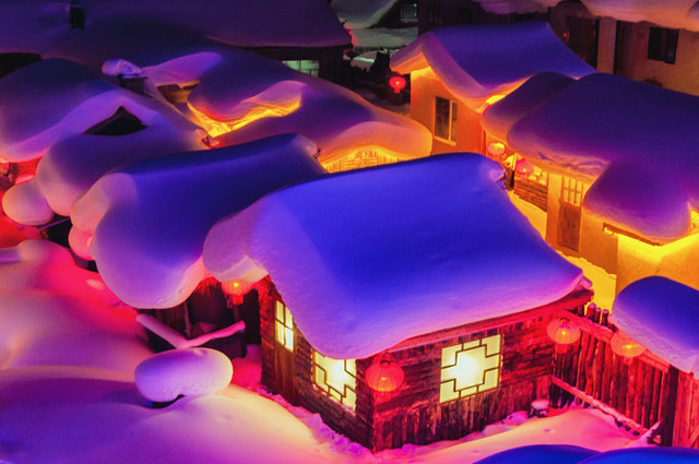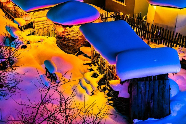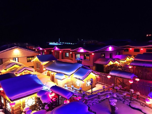 中午入驻雪乡,说一下这里的夜色,总结三个字:美!美!美!
