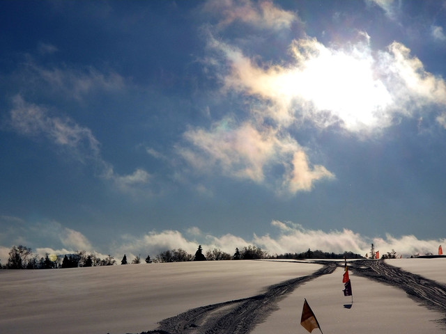 3. 雪地龙舟,雪地摩托车拉着的充气龙舟(俗称雪地大香蕉),在雾松岭大平台上飞驰。