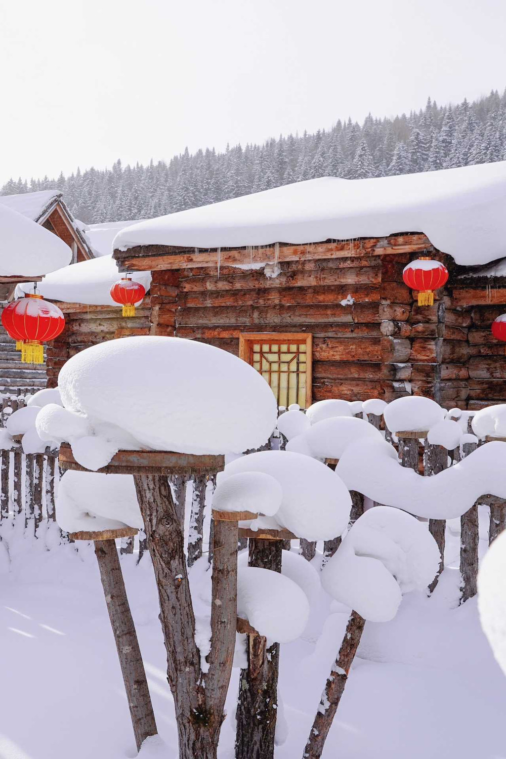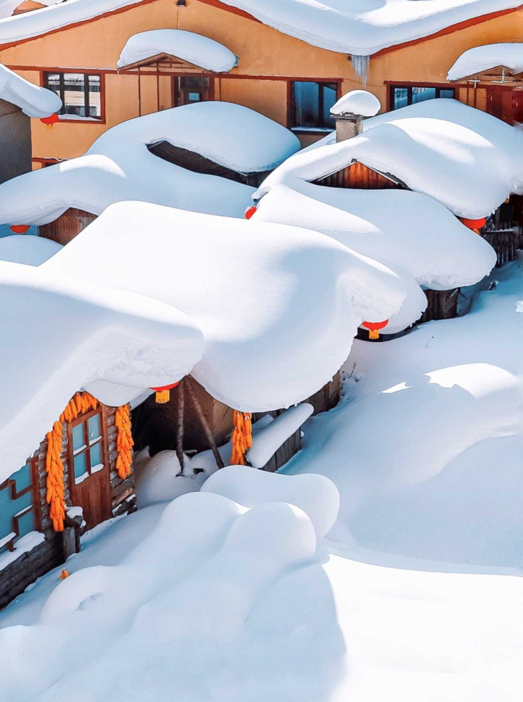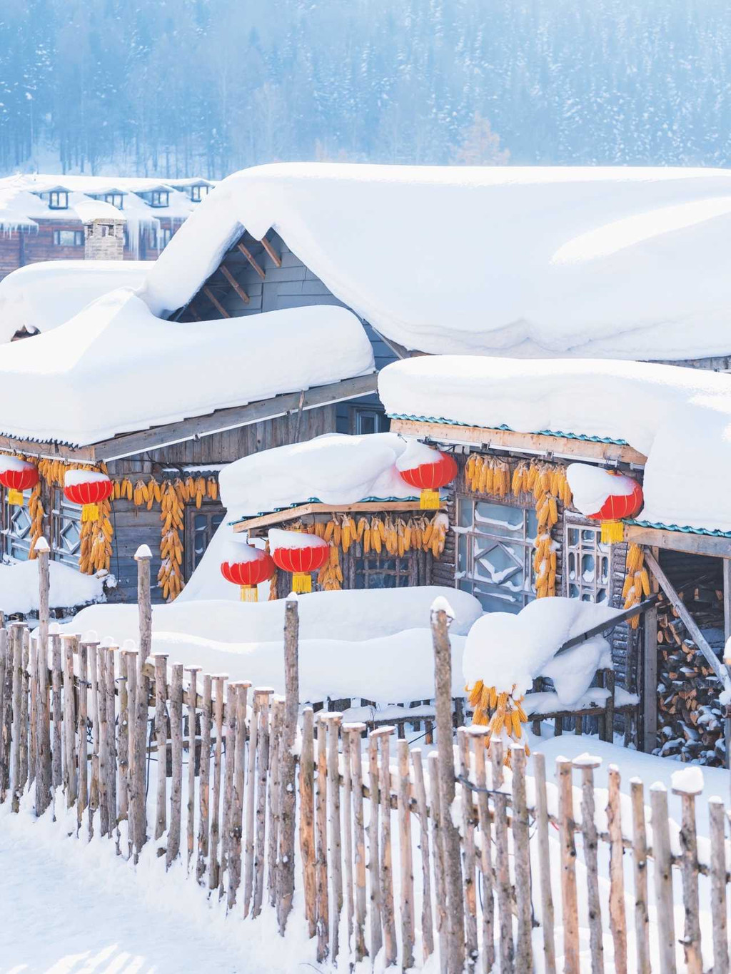 东北 的浪漫, 雪乡 占一半。堆满雪的小木屋上仿佛挂着一朵朵白蘑菇,像极了童话世界,清晨伴着炊烟袅袅,更加诗情画意❄️