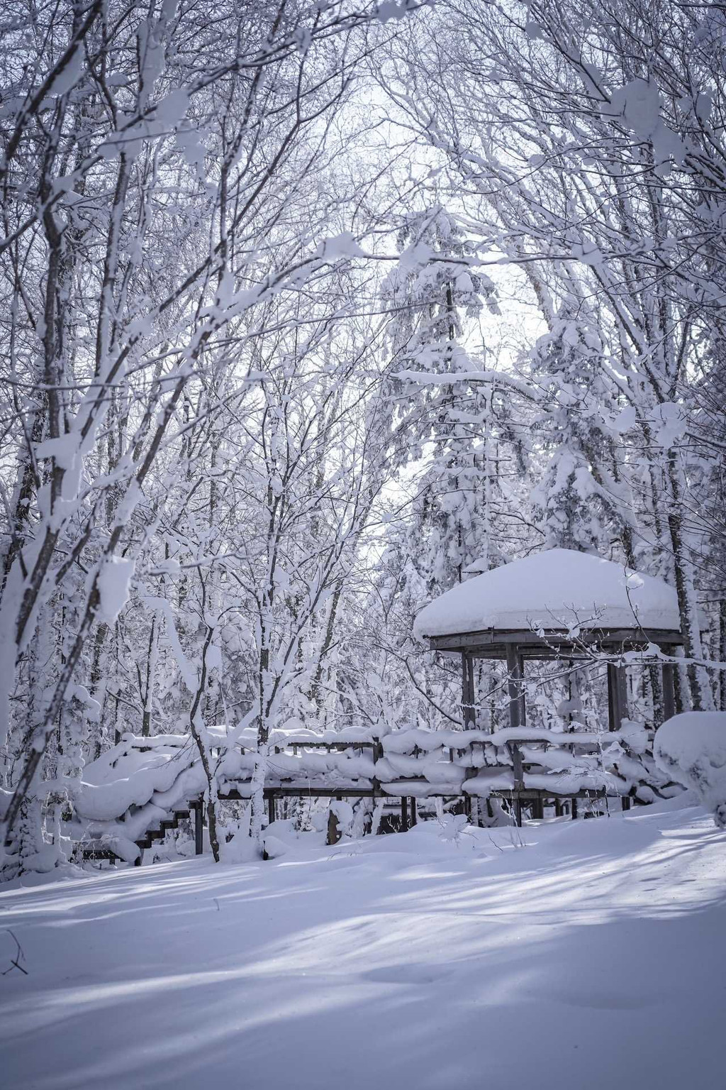 这里雪地软棉厚实,试一试躺在地上拍出浪漫感,入口处还有“雪梦空间”的木栈道,,一步一景,很是梦幻