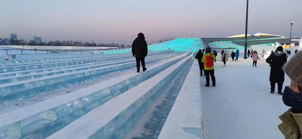 4. 关于冰雪大世界,如果你不排热门项目(大滑梯、哈冰秀、摩天轮等),3个小时应该可以逛完了,千万别信门口的卖防滑鞋钉的人,里面地面都是雪,雪地靴完全没问题。建议2、3点去,先逛逛拍照,等4点多日落了,可以看夜景,夜景中就不好拍照了,因为是逆光人拍不清楚。