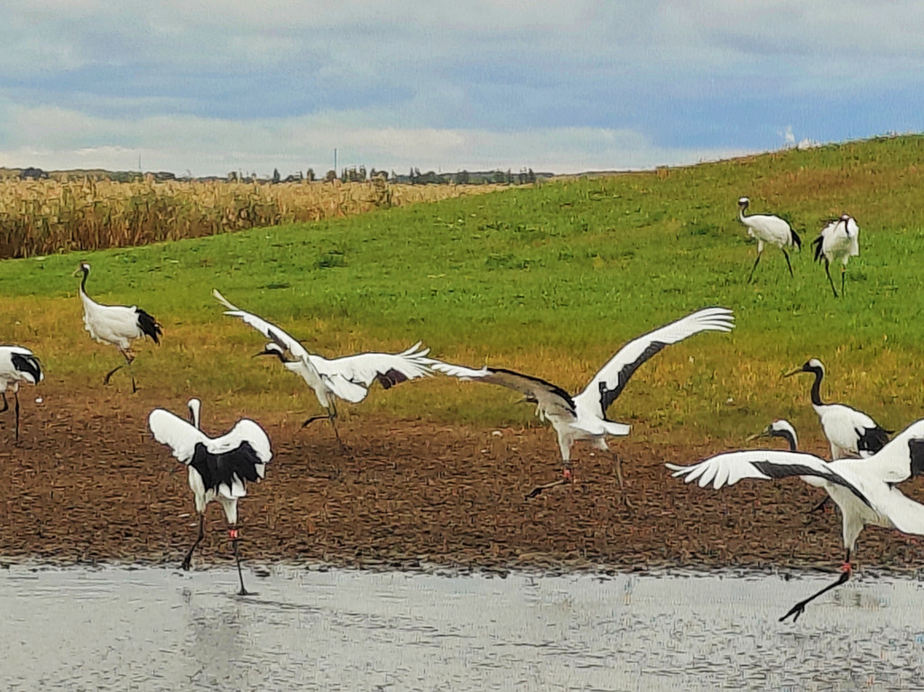 9.19出了哈尔滨,满眼秋色,广博的黑土地,树木一会儿密集一会儿稀疏,反正没有一棵像样的大树,草皮,灌木极其自然的呈现,几乎没有看到水流。七、八小时车程到了扎龙自然保护区,近距离看见了丹顶鹤。