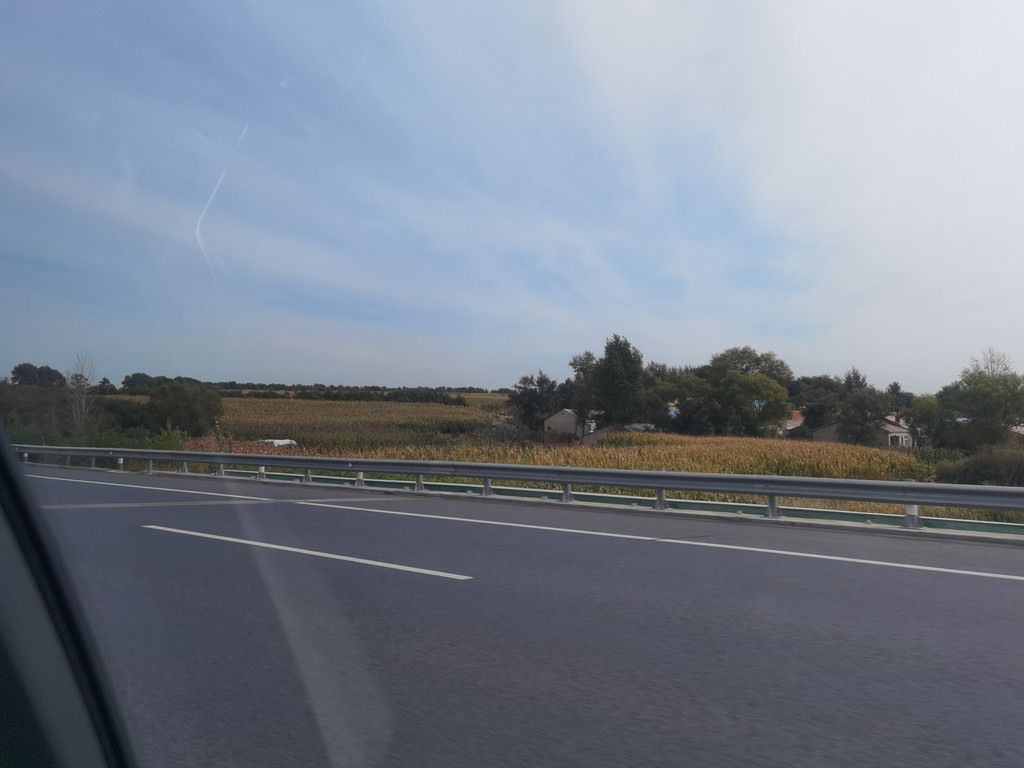 因为我还有工作要做,所以从这个服务区开始还是老公开车,两边的玉米地变为稻田,有的稻田已经开始收割了。