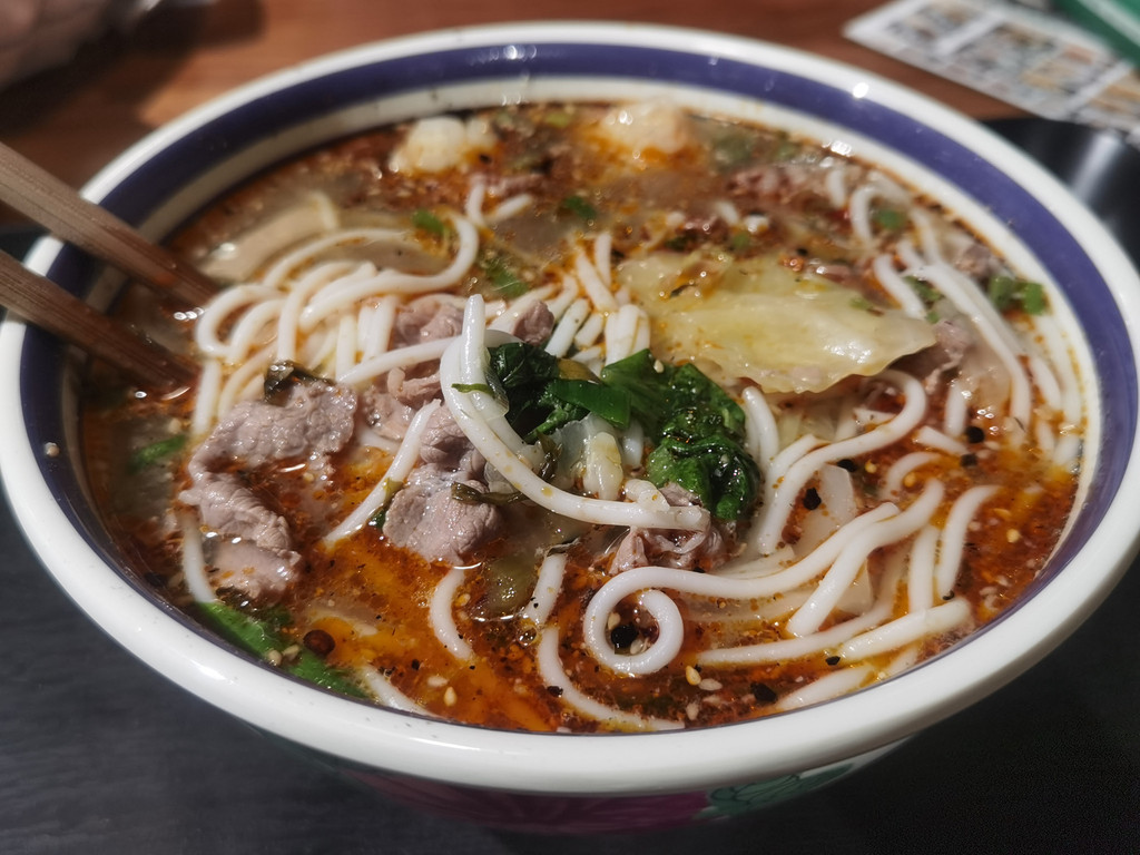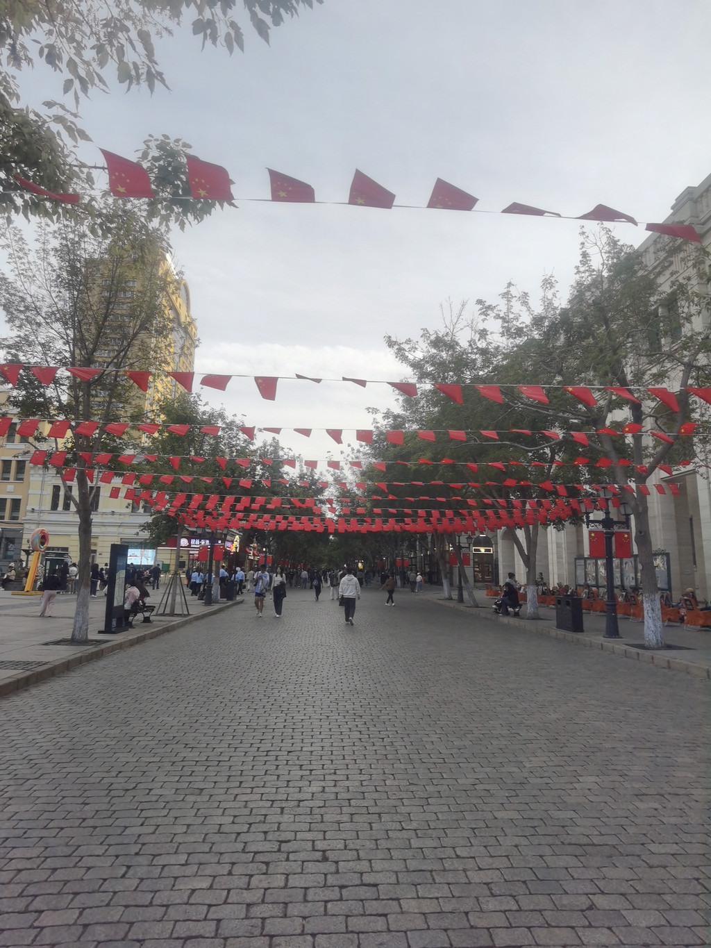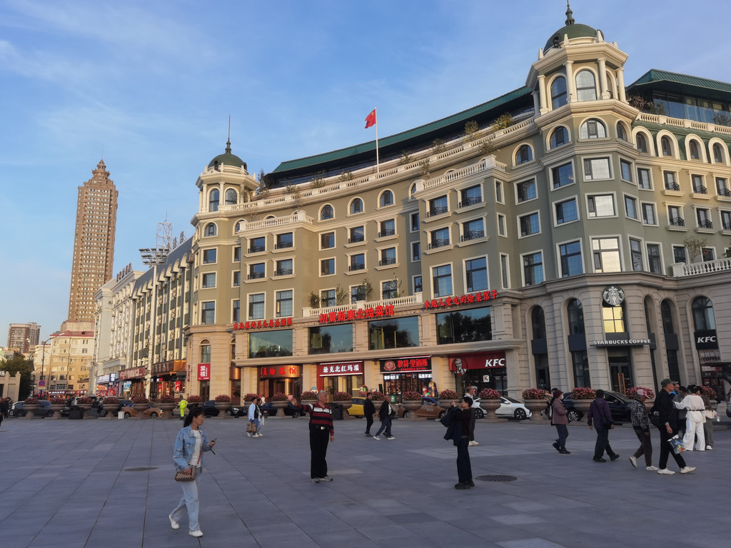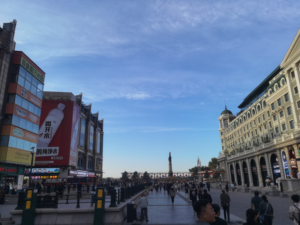 走到中央大街,我们决定先去松花江边的米粉店吃饭,