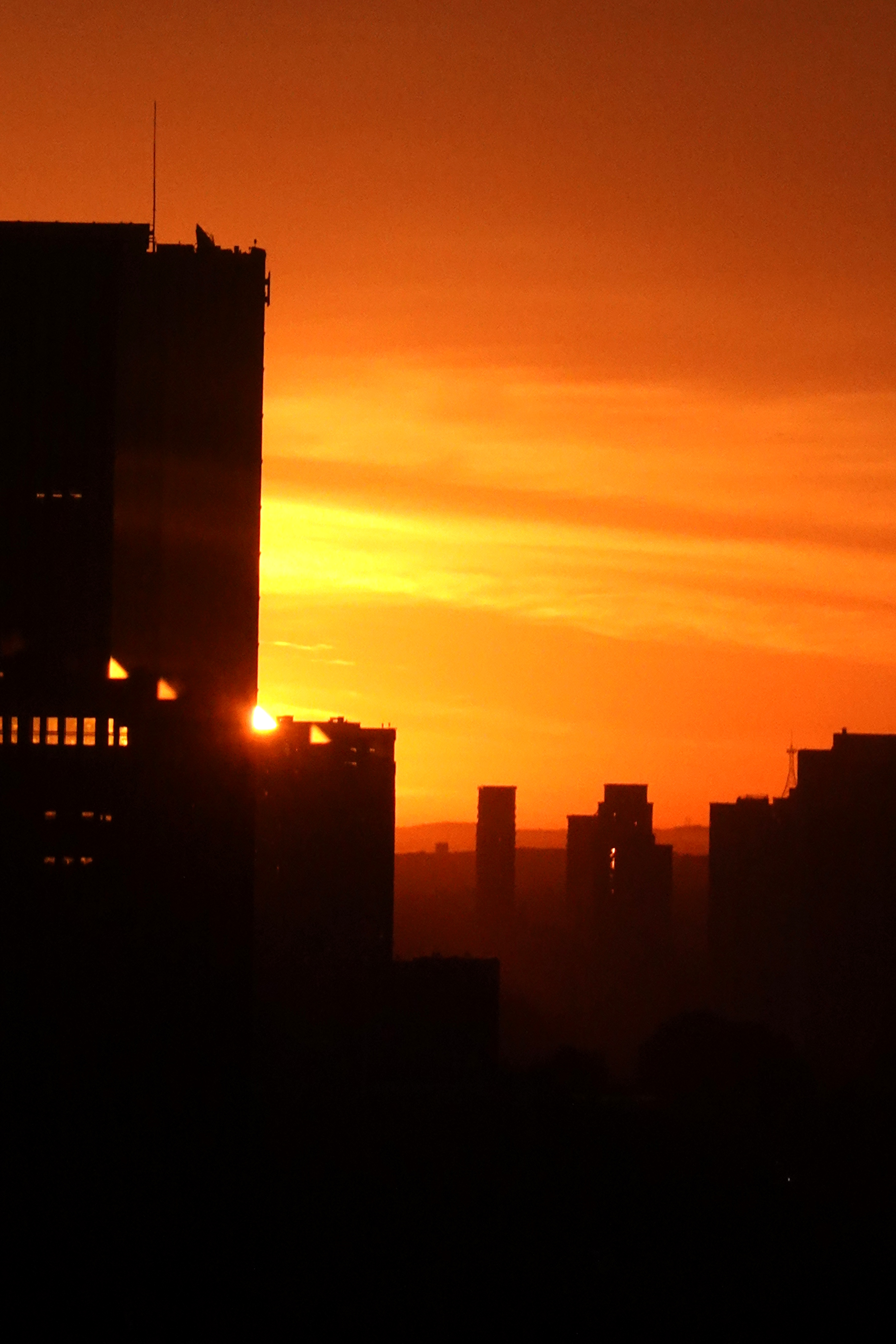 5:45太阳已完全没入地平线,城市的灯光亮起来了