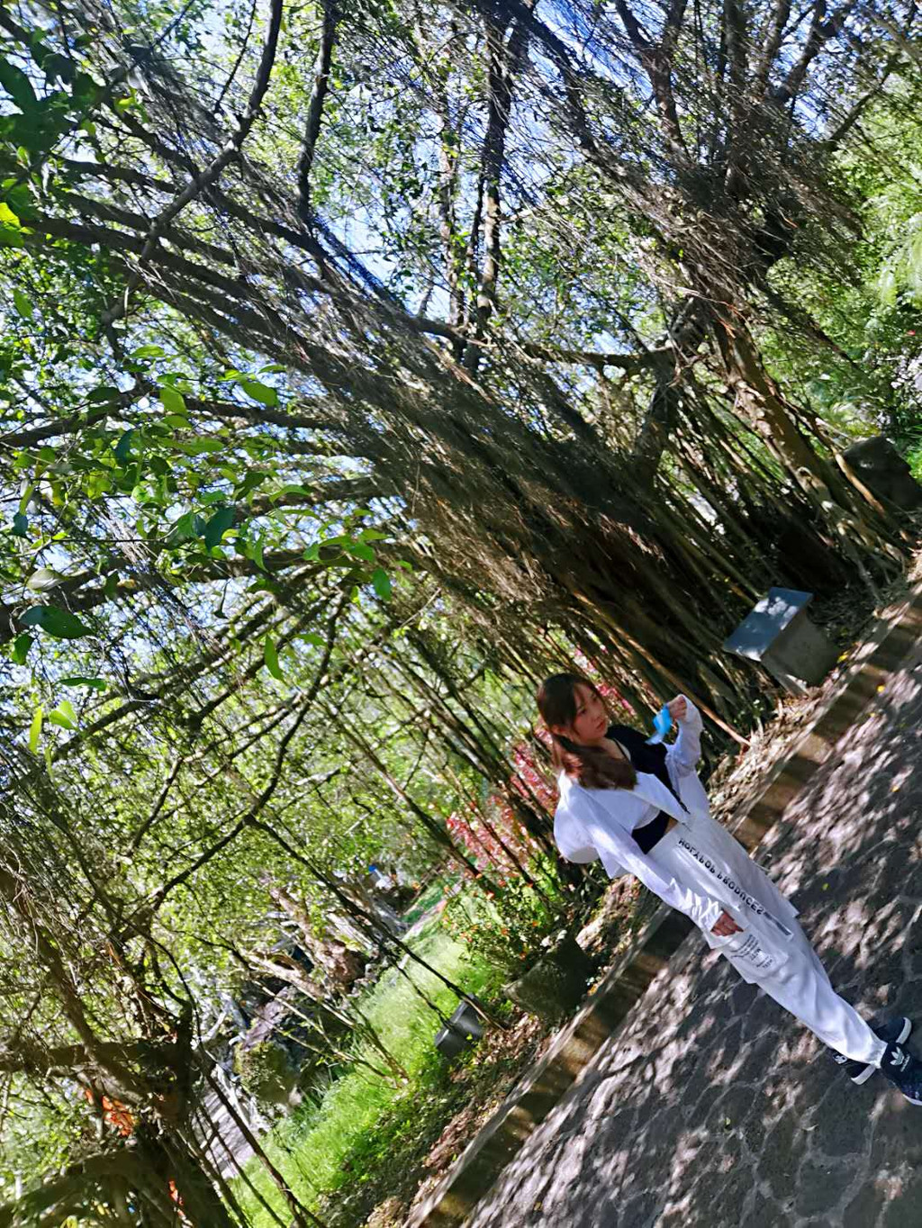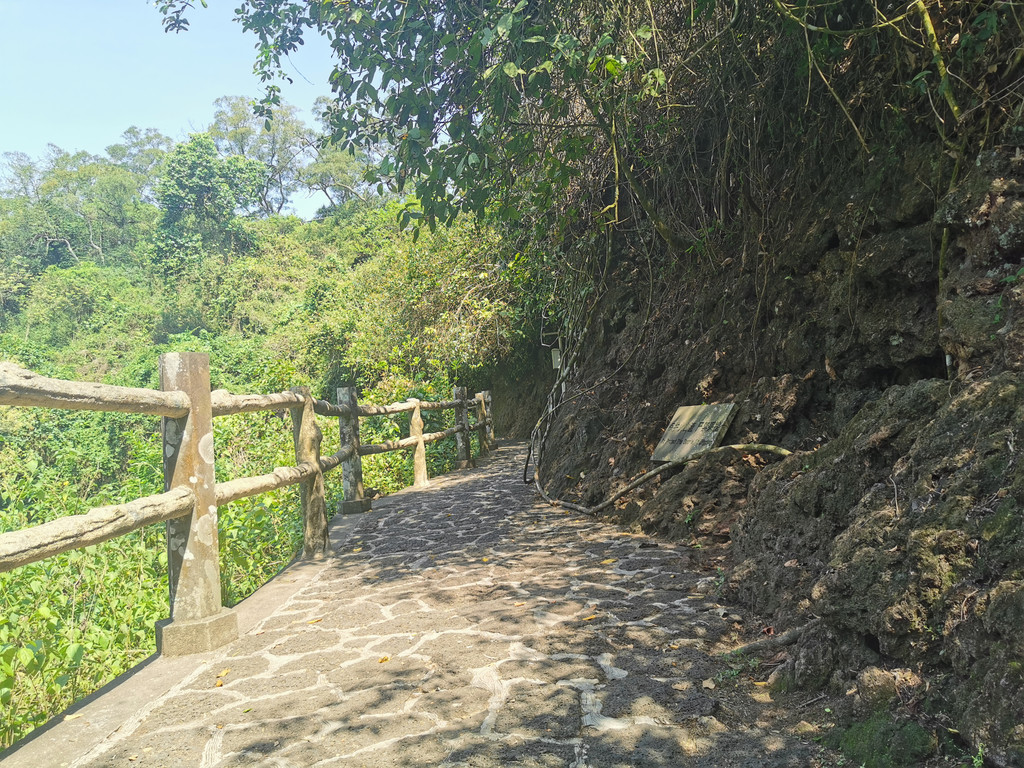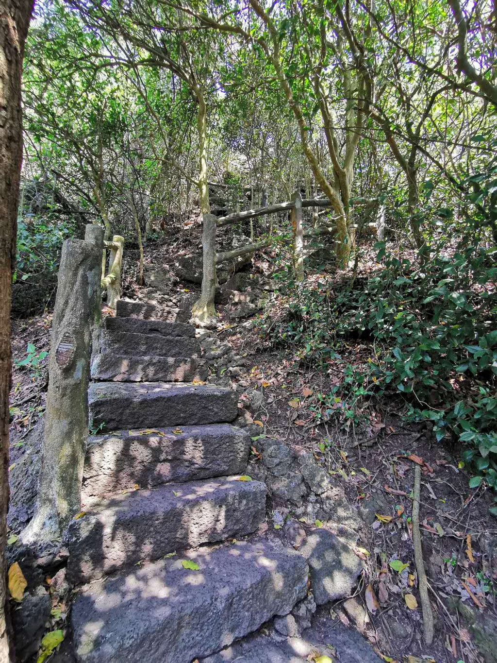 登山有石阶,在公园两侧呈A字形向上伸展,看起来格外陡峭,有点像气势雄奇的登天玉阶,体力稍弱的怕是会望而却步。我虽不喜登山,却对这火山口尤为好奇,所以趿拉着鞋拖也要登上山顶。