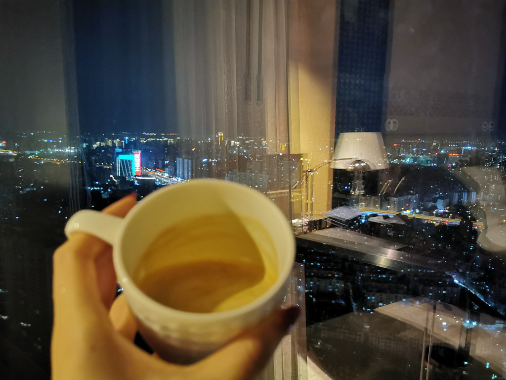 整个酒店环境幽静,开窗见海,视野开阔,我选择住宿在47层,整个海口风光一览无余。站在窗台边,品着新式咖啡机煮出来的莉梵朵,用心旷神怡来形容也不为过了。