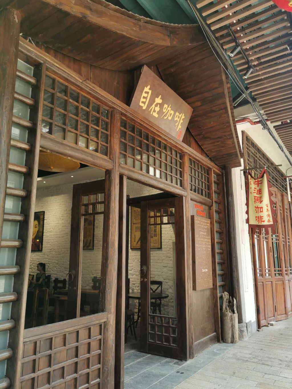 大隐于市的coffee house位于骑楼老街,看似小店进去之后会发现惊喜,十足的“海南风”。宽敞的后院,诺大的琼剧戏台,透明的双层玻璃屋,有韵味的茶桌,热带的植被……一进去整个人都会变得很轻松的状态,身心愉悦,着实应了店名“自在”。点上一杯纯正的兴隆黑咖啡或一壶沁香的莲花茶,我能在这个地方发呆好一会儿。与临近的解放西、东门市场等热闹的地方相比,这家店实在是够低调。
